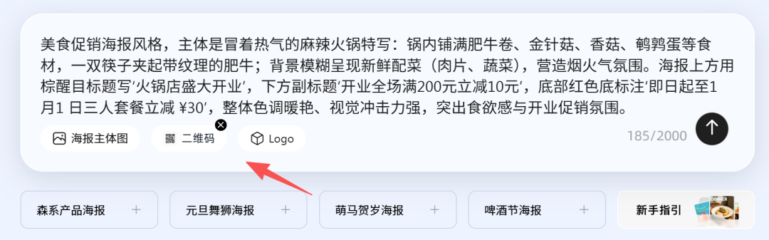 改图也很方便,点击海报上任意位置,就会出现AI修改菜单(如下图),输入要修改的提示词即可。