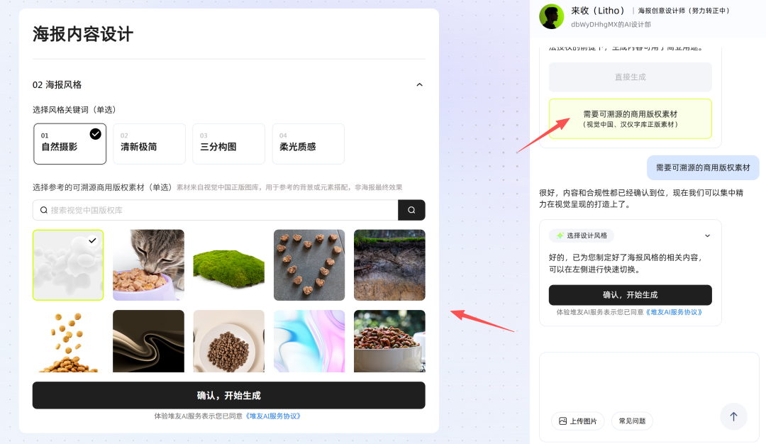 选择可溯源,则直接会引用版权网站里的图库素材,进行生成,从而规避版权争议问题,最后生完下载图片时会一起导出版权授权书。