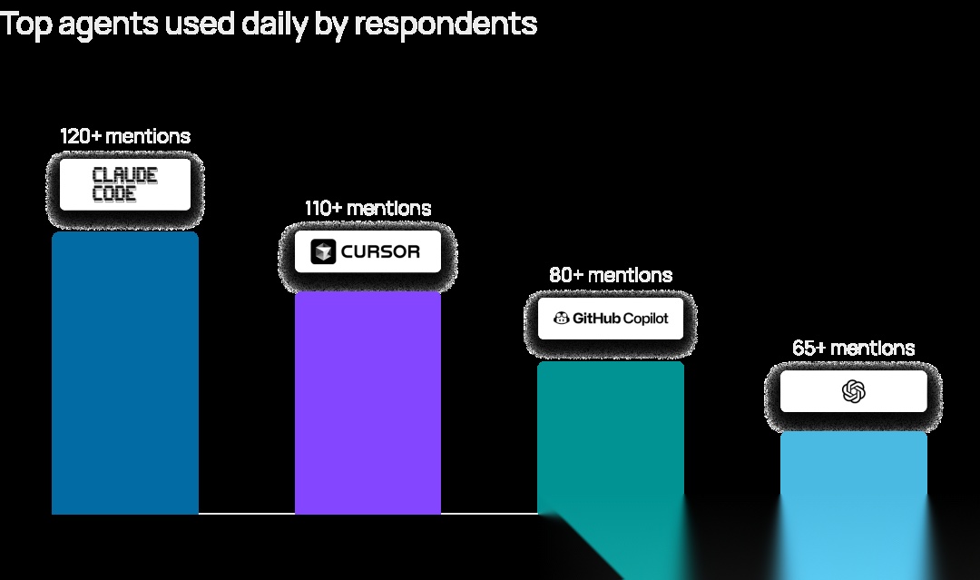最常被提及的是编码助手。受访者反复提到以下工具作为日常开发循环的一部分: