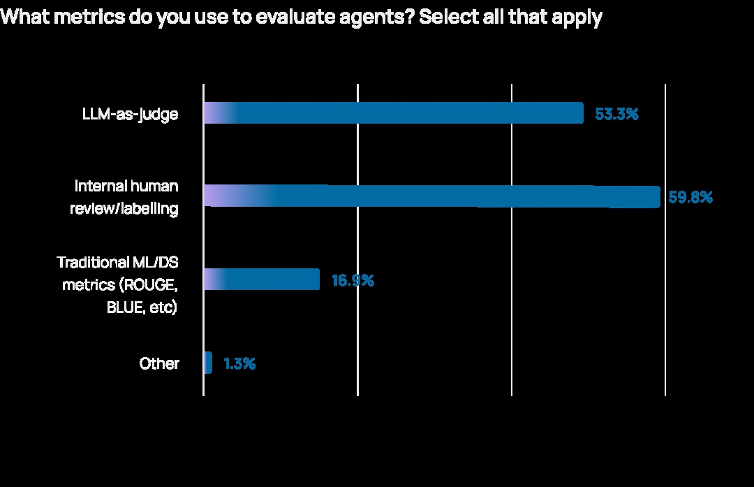 - LLM-as-Judge(53.3%) - 用于规模化评估质量、事实准确性和指南遵守