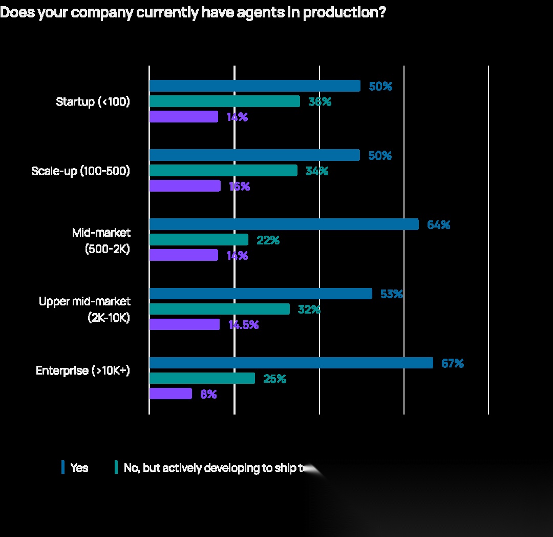- 🚀 规模化部署正在加速 - 超过半数企业已将Agent投产,大型企业引领潮流