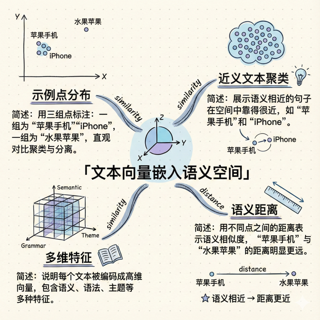 嵌入模型就是一个把文本映射到语义空间坐标的工具。