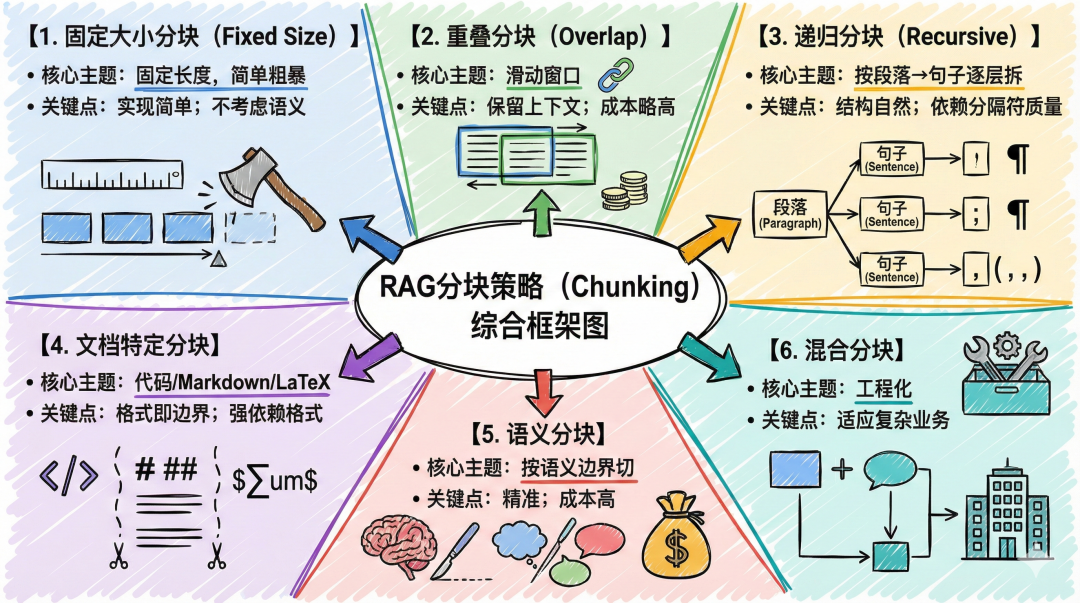 - 块太小:语义被切碎,模型拿到的上下文支离破碎