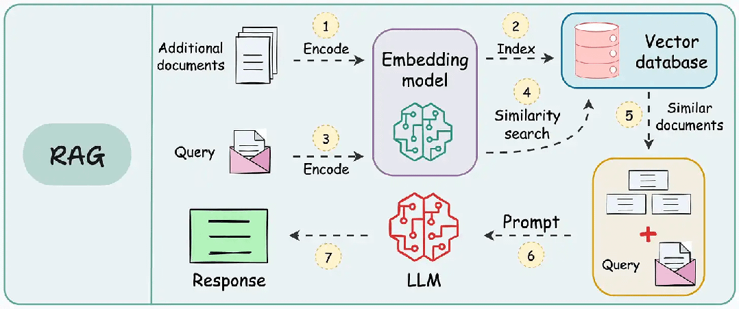 RAG 技术的核心目标是解决大语言模型(LLM)在处理特定领域知识时的局限性,比如“失忆”问题或者长文本处理的高昂成本。比如:如果你要为自己的公司搭建一个智能客服系统,大模型本身是不知道你们公司的产品细节的。如果把一本厚厚的、长达 1000 页的产品手册全部塞进大模型里,不仅成本高得吓人,而且大模型还可能因为信息量太大而“记不住重点”。RAG 技术的出现,就是为了攻克这个难题:它可以从海量文档中精准地筛选出与用户问题最相关的内容(比如:在 1000 页手册里,可能只有三段话是关键信息),然后把这部分精炼的信息和用户的问题一起交给大模型,让大模型基于这些相关的信息给出准确的回答。这种“先筛选关键信息,再基于这些信息回答问题”的模式,正是 RAG 的核心优势。