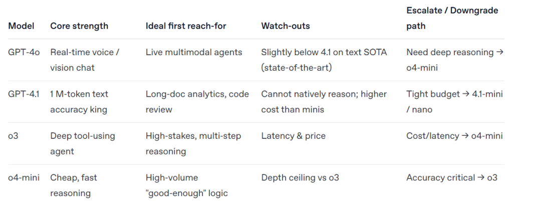 - 战略性模型选择:通过选择不同类型的模型(比如:GPT 系列和 o 系列),并根据任务需求进行组合,可以实现更高效的任务处理。