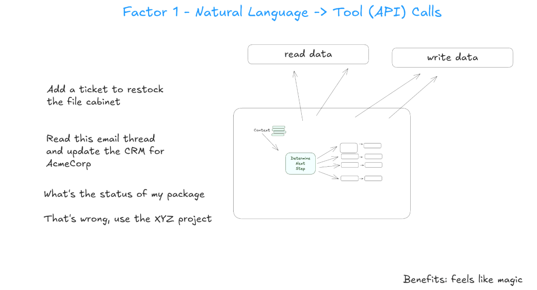 这种设计实现了 LLM 决策逻辑与应用程序执行逻辑的清晰分离:LLM 负责决定“做什么”,而代码则掌控“怎么做”。即使 LLM 调用了某个工具,具体的执行方式也不必每次都严格对应单一函数。