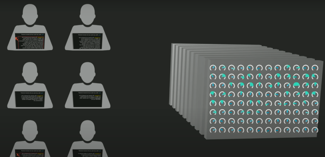 但有趣的是,这些参数并不是由人手动设定的,而是从随机值开始的。最初,模型输出的内容完全是胡言乱语,但随着训练的进行,它的预测能力会不断提高。训练的方式是让模型接触大量的文本示例,比如一段话的前面几句话,然后让模型预测最后一个单词,并将它的预测结果与真实单词进行对比。接着,使用一种叫做反向传播(backpropagation)的算法,来调整模型的参数,让它下次更有可能预测出正确的词,减少错误的概率。