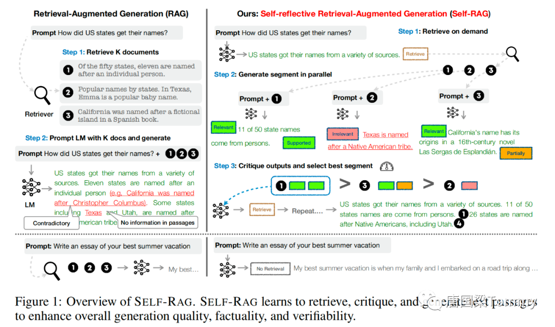 Step 3: 对输出进行评价,并选择最佳的段落。这一步骤是Self-RAG的核心,它使模型能够评判自己的输出,选择最准确和相关的段落,并对其进行迭代或改进。