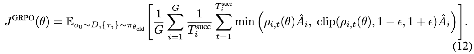 - GRPO:轨迹长度归一化(trajectory-length normalization)与动作掩码(action masking)是稳定训练的关键。