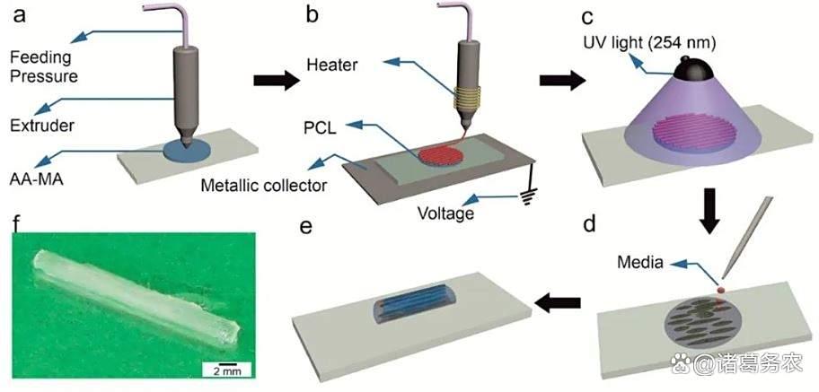 藻酸盐-合成聚合物复合:例如与PCL结合,通过近场直写(Melt-Electrowriting)技术制备支撑结构,引导水凝胶的4D变形和细胞定向生长。