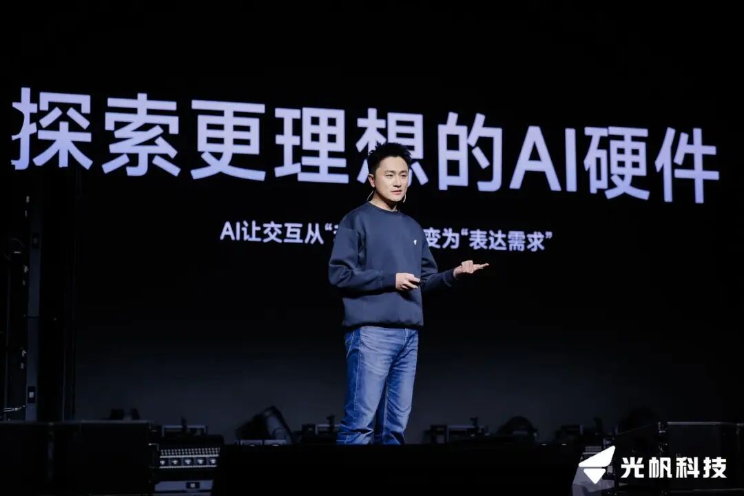 2025年12月底,他站在台上,这次他的身份,是一家估值超10亿元的AI硬件科技公司创始人,他所在的公司光帆科技,发布了全球首款具备视觉感知能力的AI耳机。