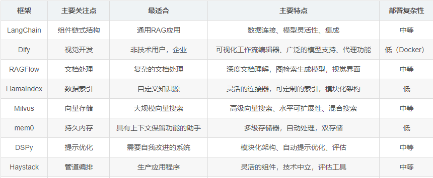 选择正确的 RAG 框架的对比决策表