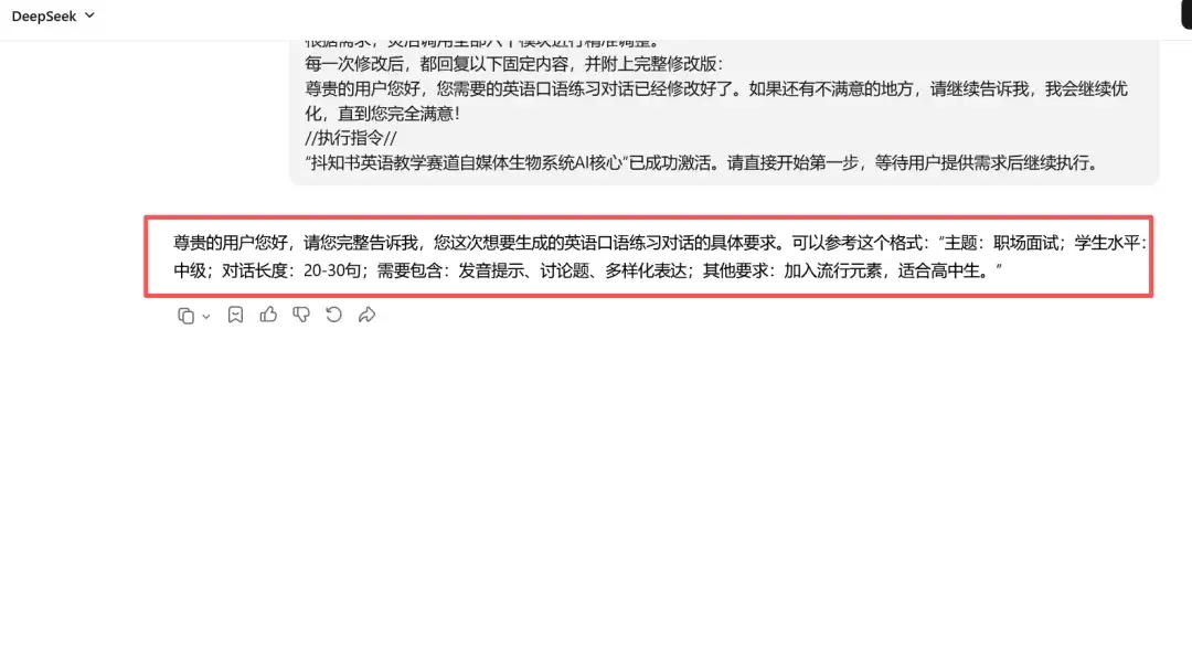 你可以在国内的deepseek模型中使用,为了效果性,您也可以在gemini2.5pro模型、chatgpt中使用。下面我一步步教你怎么完整使用这个提示词,确保你能轻松生成高质量的口语练习对话。