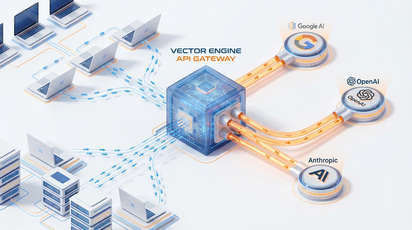 在微服务架构中,我们用网关来屏蔽后端服务的差异。 在大模型应用中,我们也需要一个Model Gateway。 我目前生产环境使用的是 Vector Engine。 它的核心逻辑是: Standardization(标准化)。 它将Gemini、Claude、GPT等所有主流模型的接口, 全部清洗成了OpenAI兼容格式。