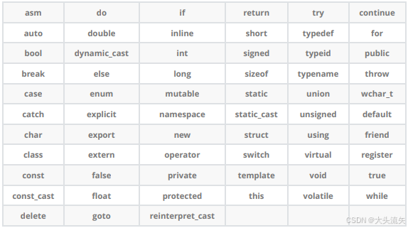 这里只了解C++有多少关键字和关键字是那些,不对关键字的进行具体的讲解