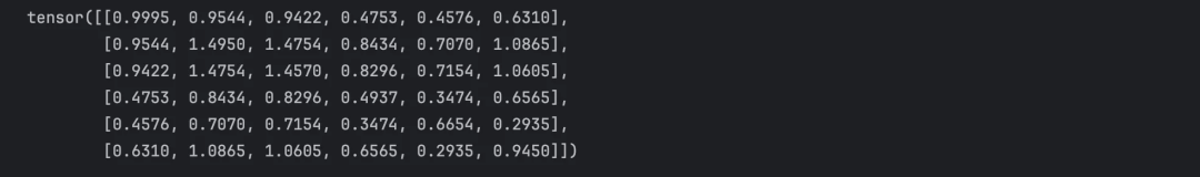 从输出中可以看到,softmax 函数可以实现注意力权重的归一化,使它们的总和为 1: