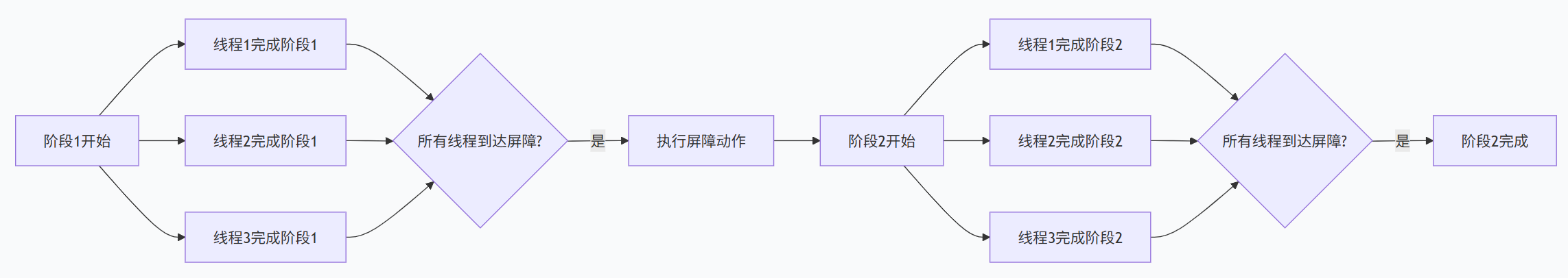 - 多线程初始化后同步启动:如多个线程完成各自的数据加载后,主线程再开始处理业务。