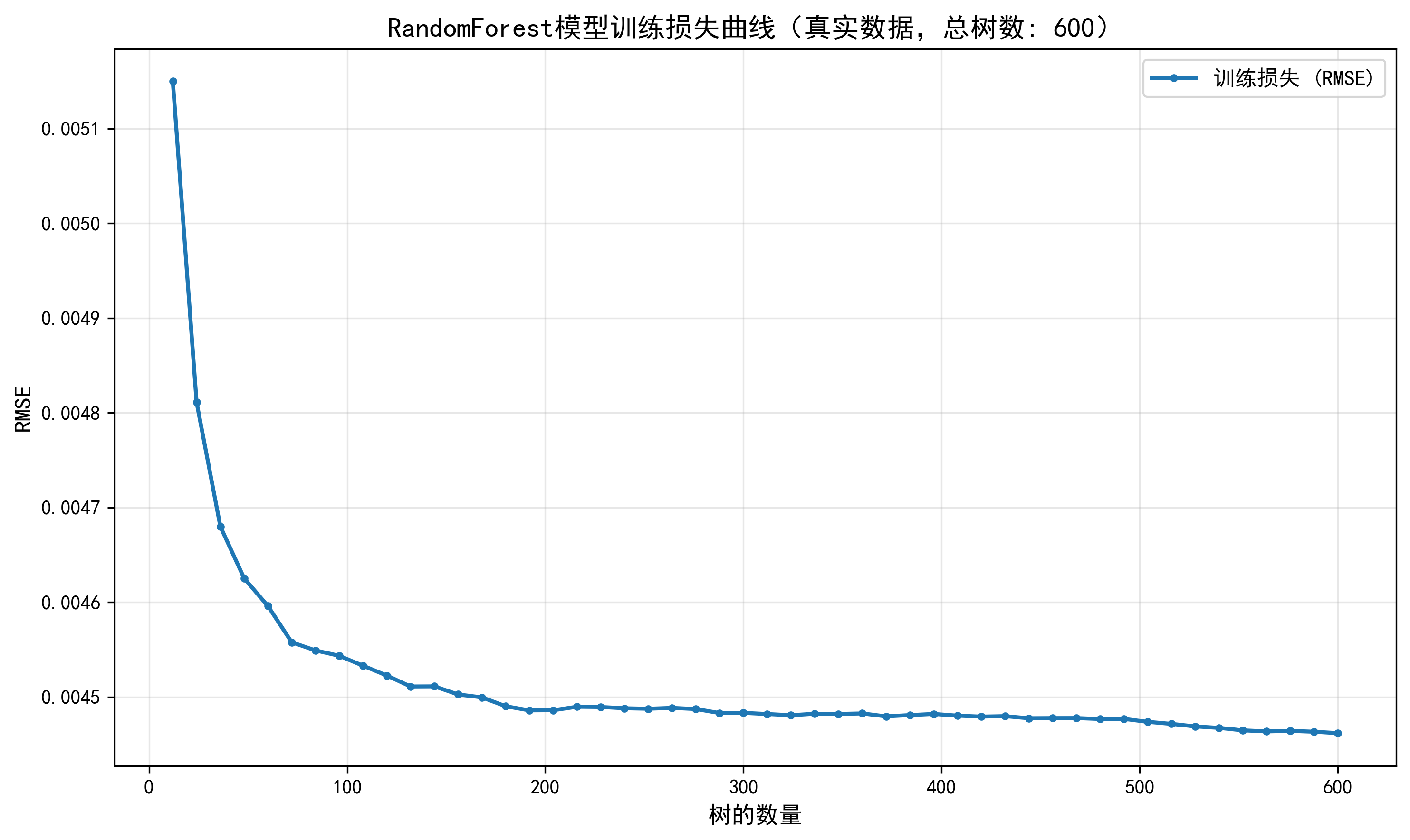 RandomForest没有内置的训练历史记录功能,本项目采用了逐步训练的方法: