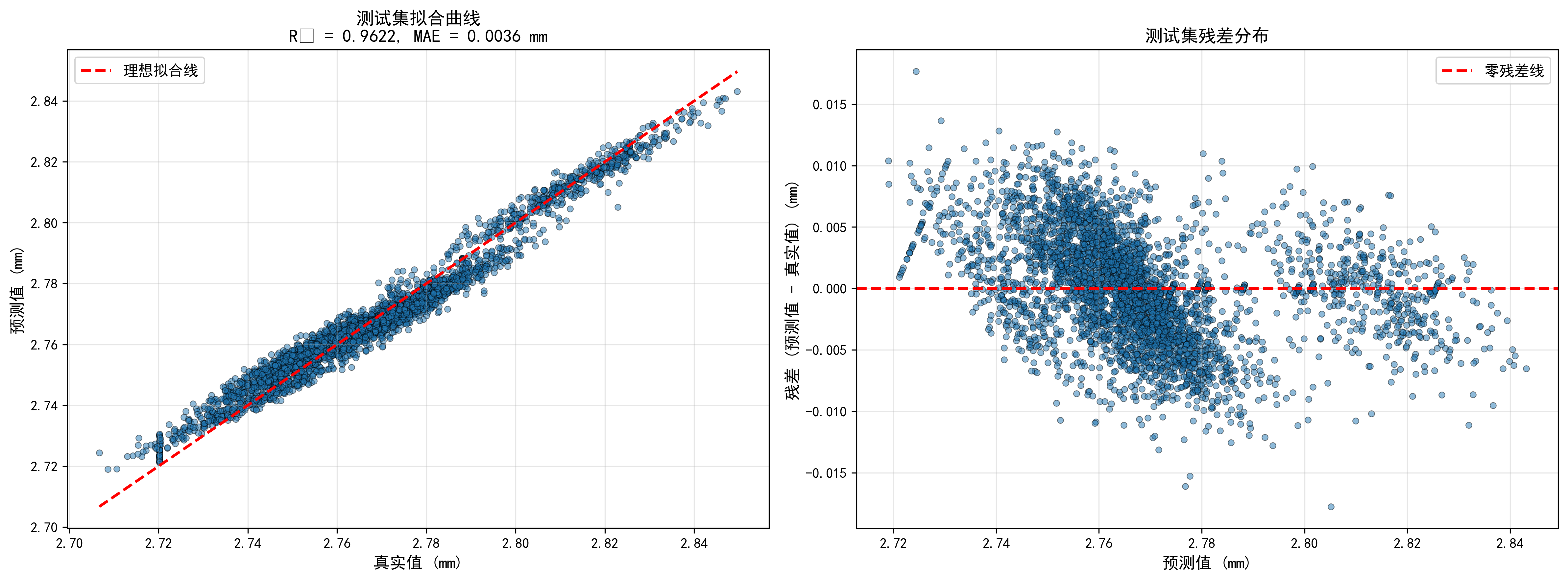 预测精度高:在本文项目中,模型达到了R² = 0.962,MAE = 0.0036mm的优异性能,远超传统方法。