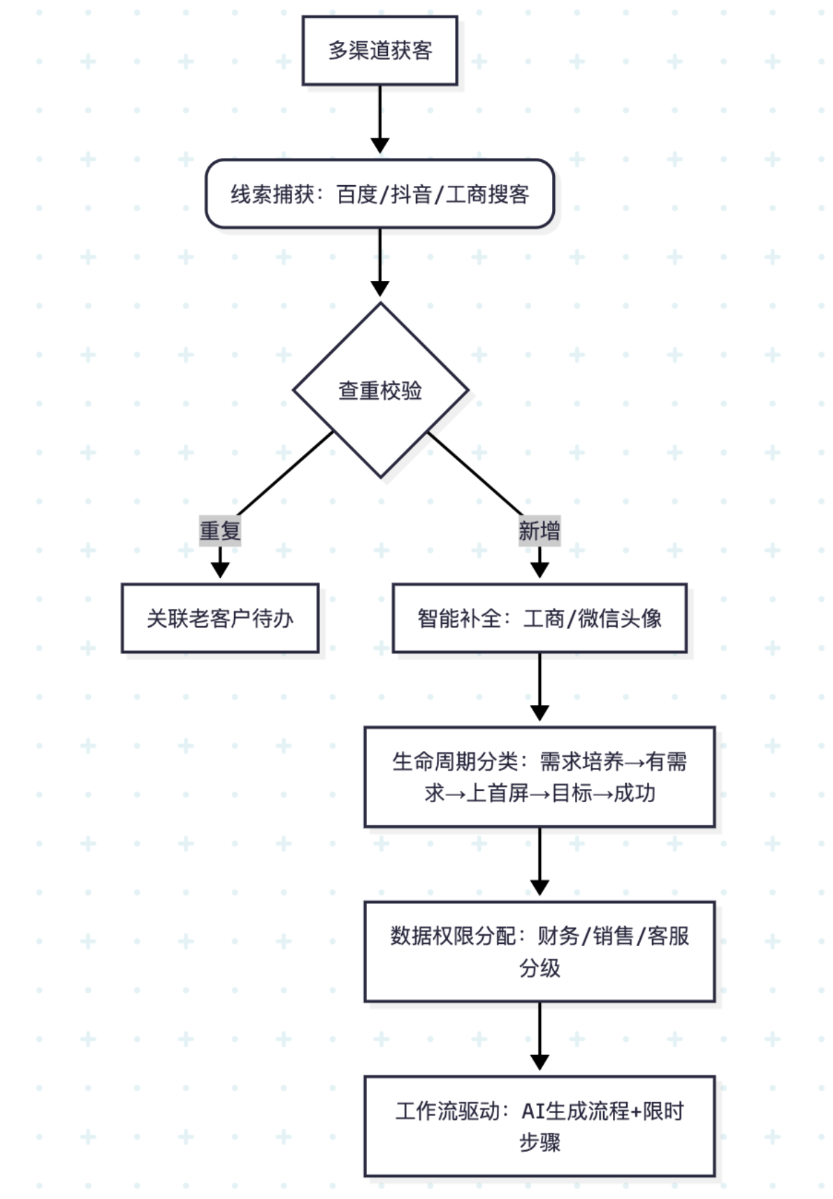 线索管理的核心是精准识别高价值线索+快速分配跟进,提升线索转化率。