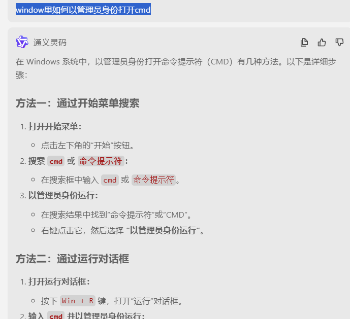 对应的命令行如下。这里有个注意事项,打开cmd要以管理员身份打开,同样可以问ai