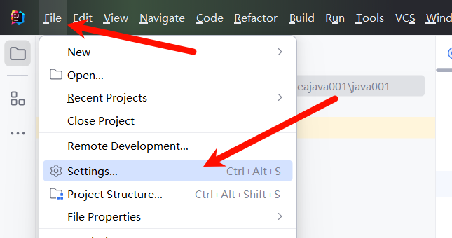 idea进行汉化,点击左上角的File,然后找到Settings