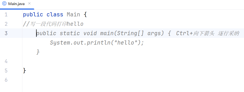 我们可以让ai给我们写一段打印hello的代码,可以看到ai自动帮我们写出了代码,我们只需要按tab键接受即可