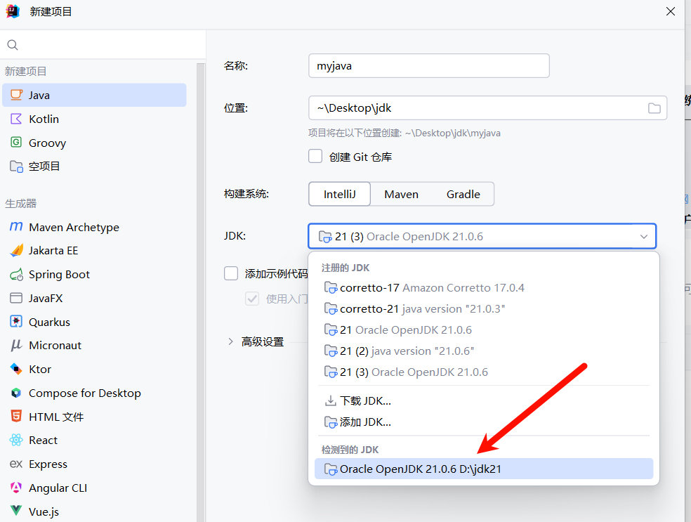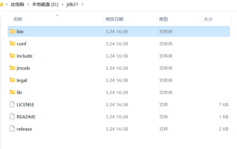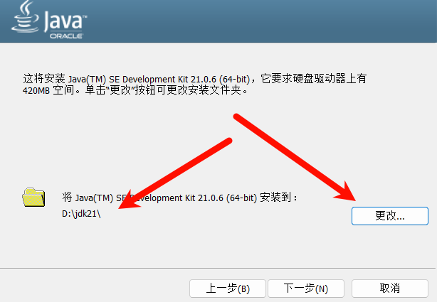 好比我在D盘单独创建个jdk21的目录用于安装jdk