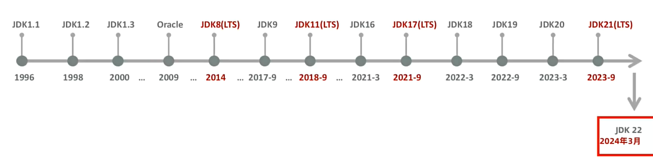 上图是Java的jdk发展历史,截至目前已经推出jdk24了