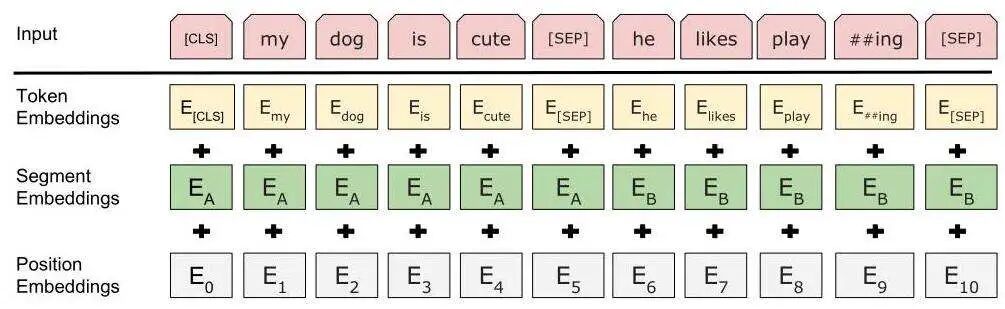 BERT的输入Embedding模块由三部分组成: