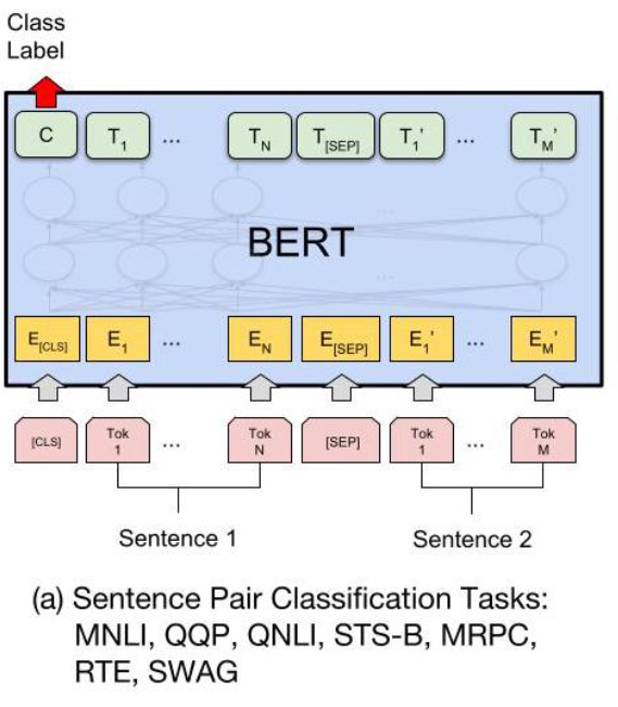 如下图所示,句对分类的处理过程为: