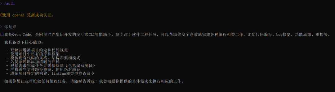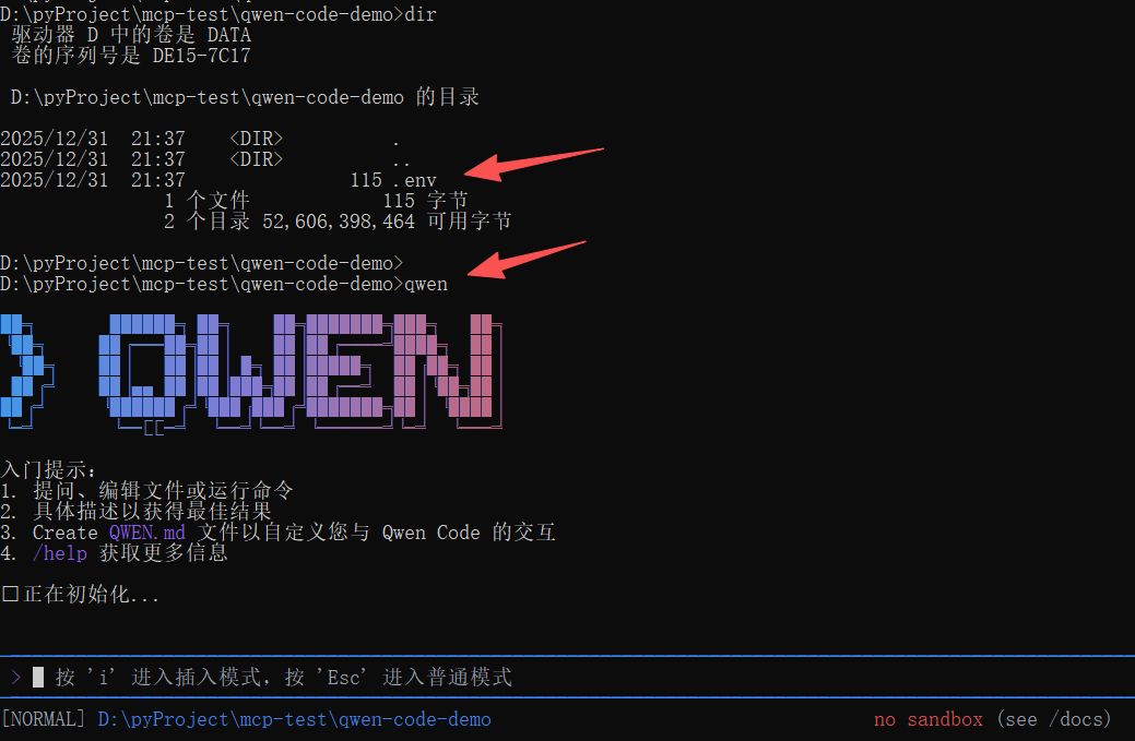 然后在 .env 文件同级的目录下唤醒 qwen: