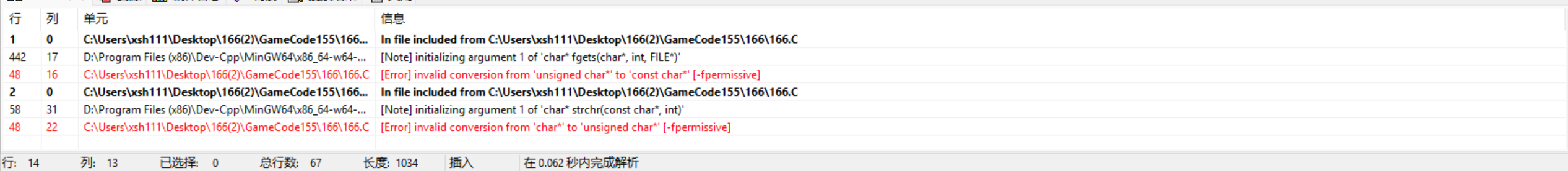 ◦ 解决方案:显式进行类型转换,修改为pf = (unsigned char *)xx[i];,符合C语言指针类型转换的语法规范。