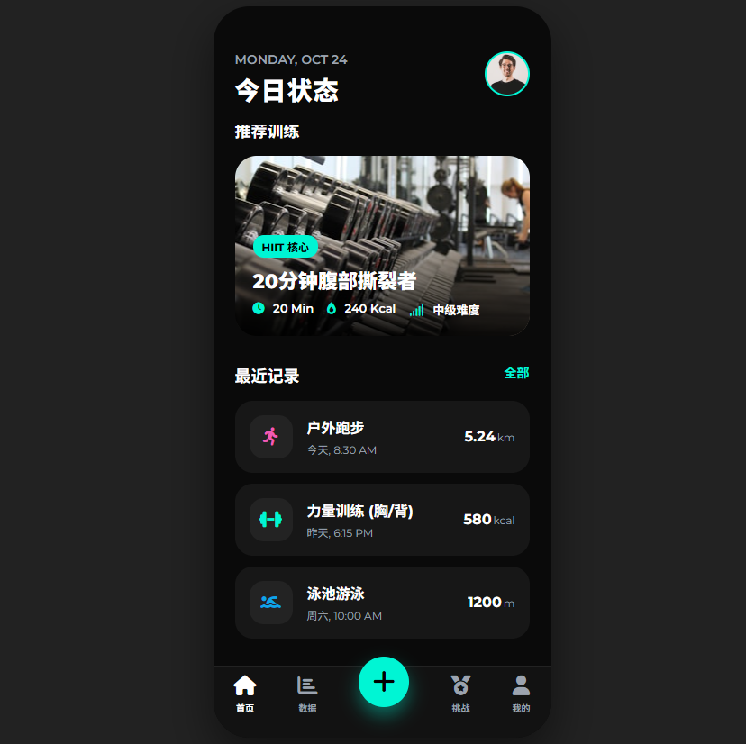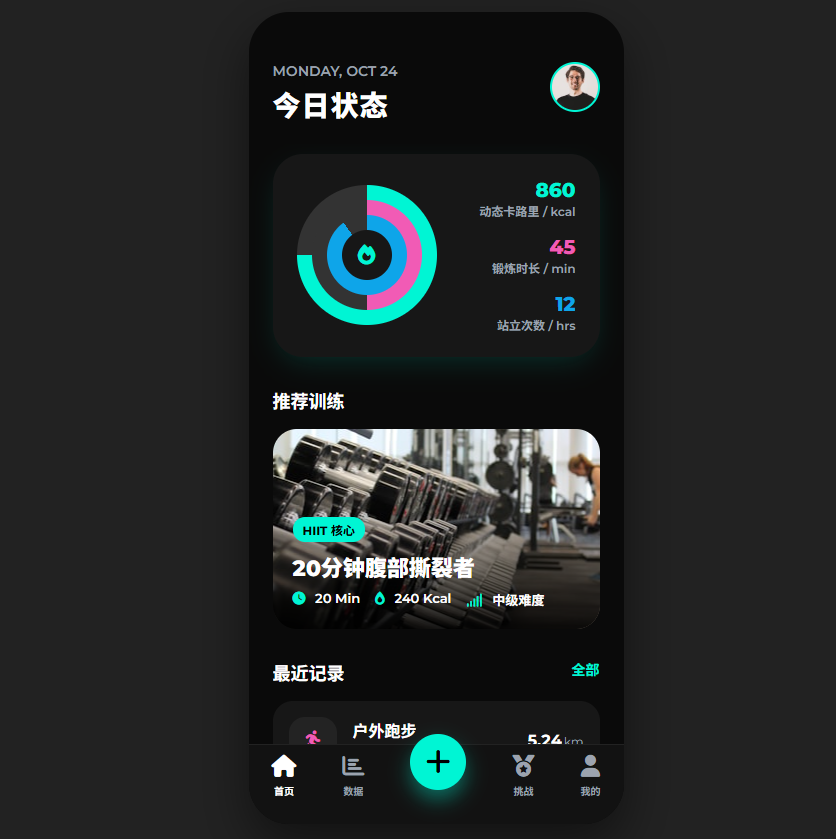 适合健身房管理系统、个人健康追踪应用。