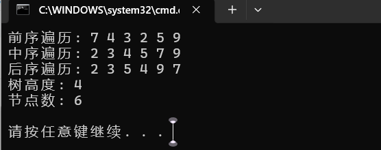 printf("\n树高度: %d", treeHeight(root));