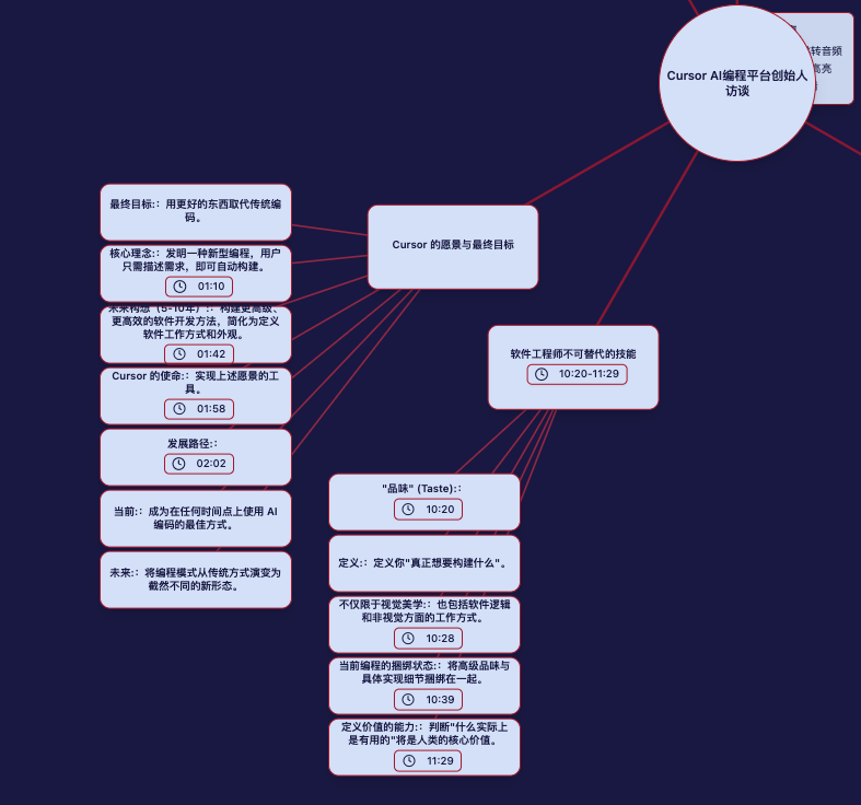 除了能把将音频内容转换为文本,还能对音频内容有深层理解,这些都体现在给出的思维导图里。