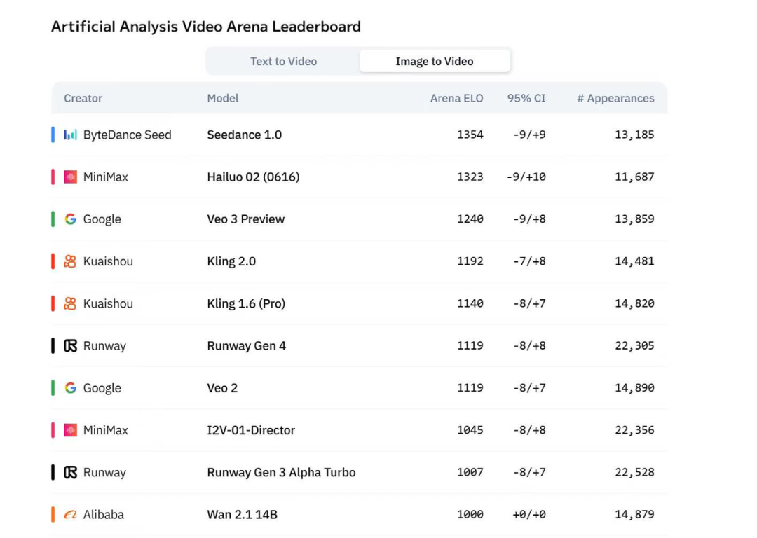 MiniMax 视频模型 Hailuo 02 位列 Artificial Analysis Video Arena 榜单第二