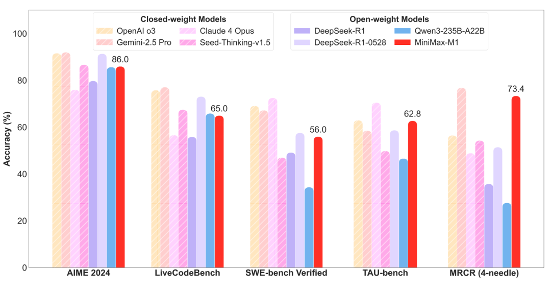 今天 MiniMax 开源全球首个大规模混合架构的推理模型 MiniMax-M1,原生支持 100 万 token 的输入长度和 8 万输出 token 的行业最长输出,推理算力生成 10 万 token 只需要 DeepSeek R1 的 25%,将推理模型的价格又打了下来。