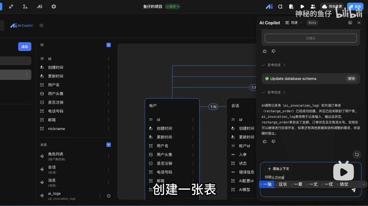 这一步甚至可以直接告诉 AI:“我要一个存储用户剩余生成次数的表”,它就能自动创建。