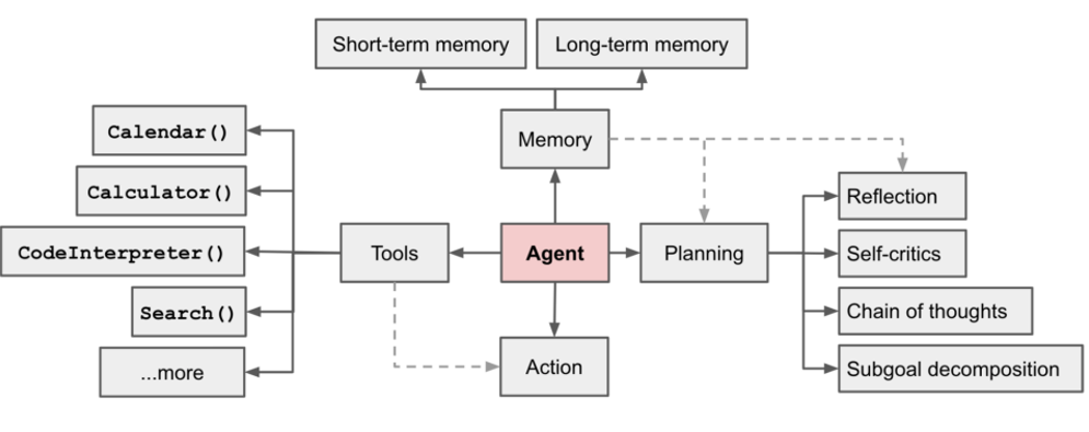 - 执行行动(Action):能够操作各种工具操作外部环境,执行具体的行动,继而改变环境。
