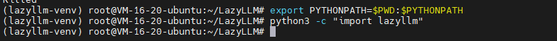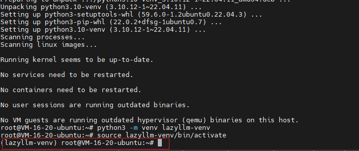 在终端提示符前成功出现lazyllm-venv,表示激活成功。创建虚拟环境的目的就是为了相互隔离环境,避免全局污染。
