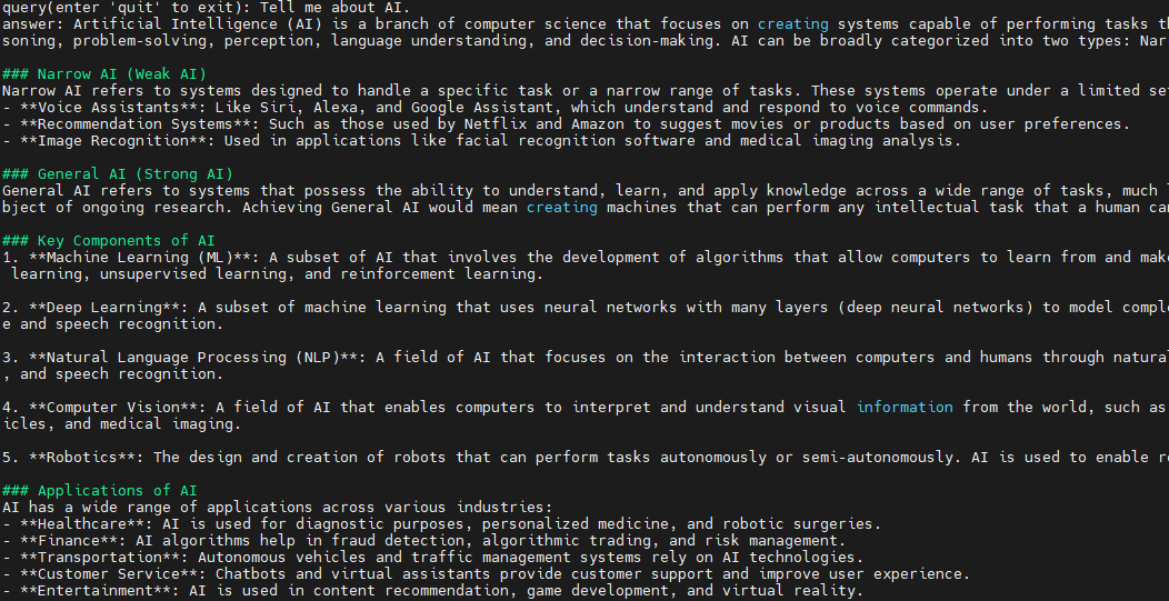 query = input("query(enter 'quit' to exit): ")