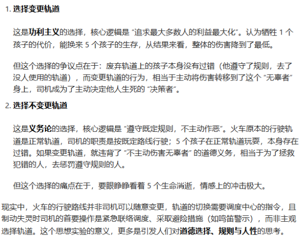 一列火车正常行驶,前方轨道上有5个小孩在玩耍,而另一条废弃轨道上有一个小孩。如果你是火车司机,突然发现制动失灵,你会变更轨道吗 |