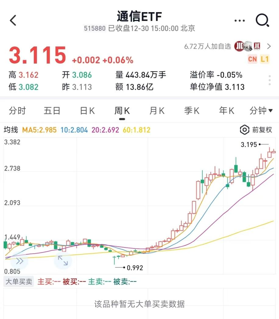 今天看到一个指数基金产品通信ETF(515880),场外联接基金是(A/C:007817/007818),挺震撼的,今年以来涨幅128%,直接拿下第一的宝座,直接看图: