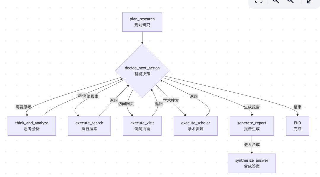 def _think_and_analyze_node(self, state: ResearchState) -> ResearchState: """思考和分析当前研究状态""" # 分析已收集的信息 # 决定下一步行动 # 更新研究策略 return updated_state