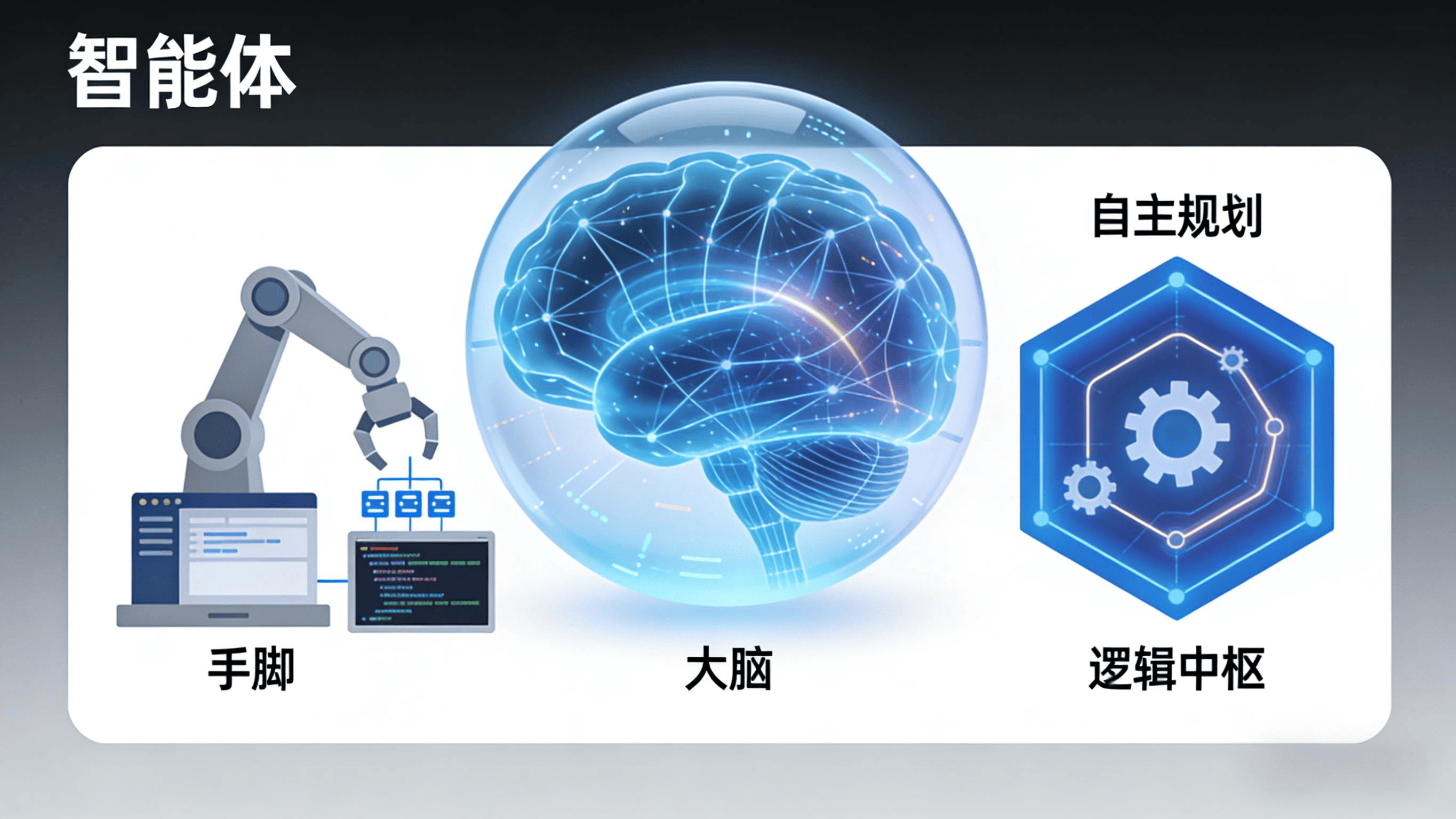 中国信通院在《智能体技术和应用研究报告(2025年)》里给了个更专业的定义:智能体是能够感知环境、理解指令、规划决策、执行任务的软件系统或硬件实体,核心价值是破解大模型“有脑无手”的困局,实现从“认知”到“行动”的闭环。这个定义可能有点绕,换个直白的说法就是:智能体=大模型的“大脑”+ 能操作各种软件的“手脚”+ 自主规划的“逻辑中枢”。