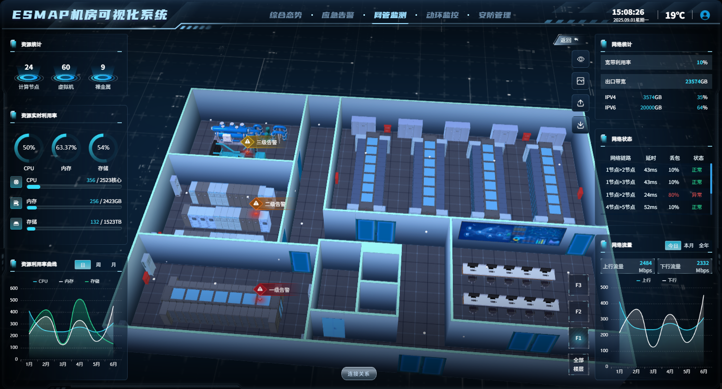 通过 “一屏整合、动态更新”,运维人员可快速掌握多机房的整体运行态势,大幅提升管理效率。