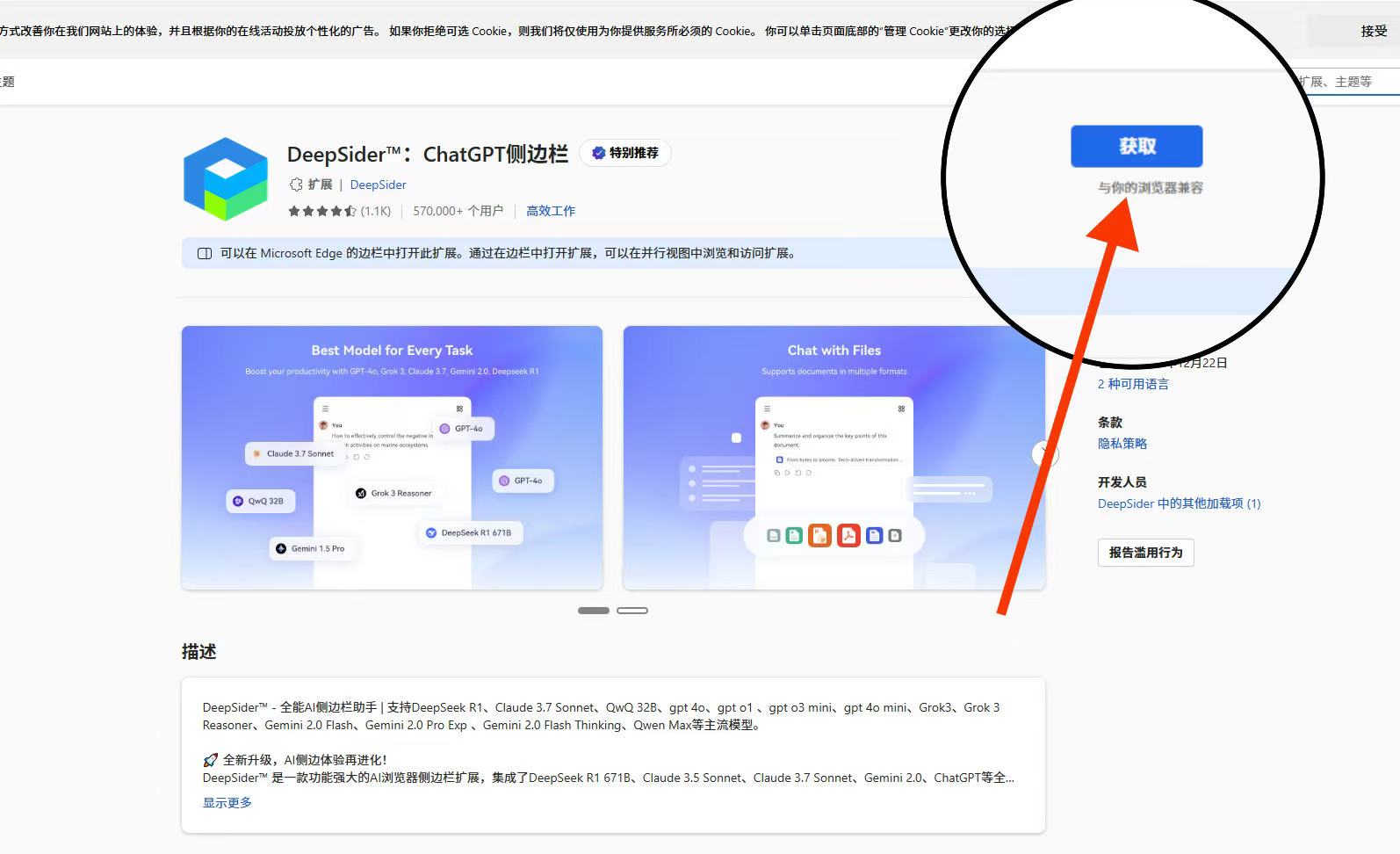 直接在 Edge 扩展商店搜索 DeepSider 即可下载。