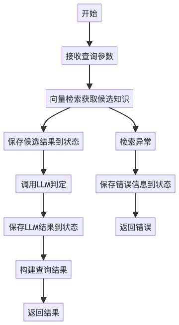 retrieve:执行核心知识检索,从数据库获取匹配的内容validate_result:校验检索结果有效性(比如是否为空、是否符合业务规则)get_version_info:补充结果的版本信息(适配多环境 / 多版本场景)finalize:整合所有信息,生成最终可输出的结果