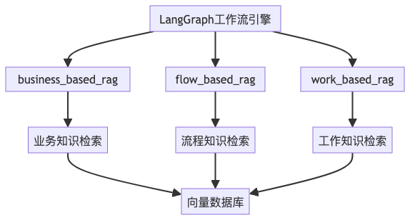 我们将 RAG 功能拆分为多个独立的服务模块,如business_based_rag、flow_based_rag和work_based_rag,每个模块都可以独立集成到 LangGraph 工作流中。